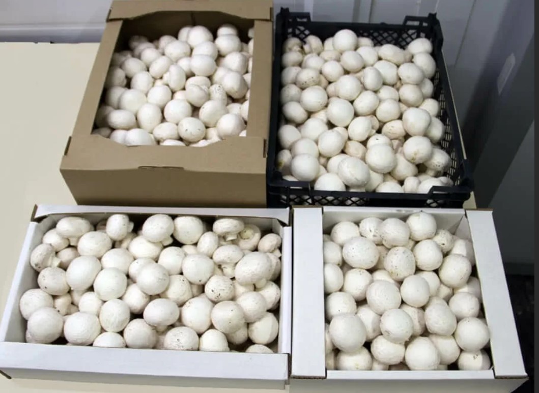 Най-важното е компостът. Можете да си го направите сами, но ние решихме да купим готов компост, вместо да експериментираме, страхувайки се да не развалим всичко поради неопитността си. Поставихме го в кутии (30 см дълбочина), измерихме температурата с термометър и добавихме мицела, когато достигна 26°C. Чакахме повече от месец за първата реколта. Отглеждането отне два месеца; можете да правите 5-6 такива цикъла годишно. Спряхме се на малки обеми, но по този начин можем да увеличим добива до индустриално ниво.