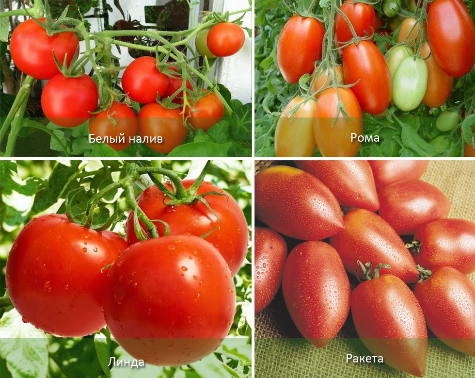 Нискорастящи и среднорастящи сортове: Линда, Ракета, Рома, Невски, Ла Ла Фа, Медово-захарен, Белая Налив.