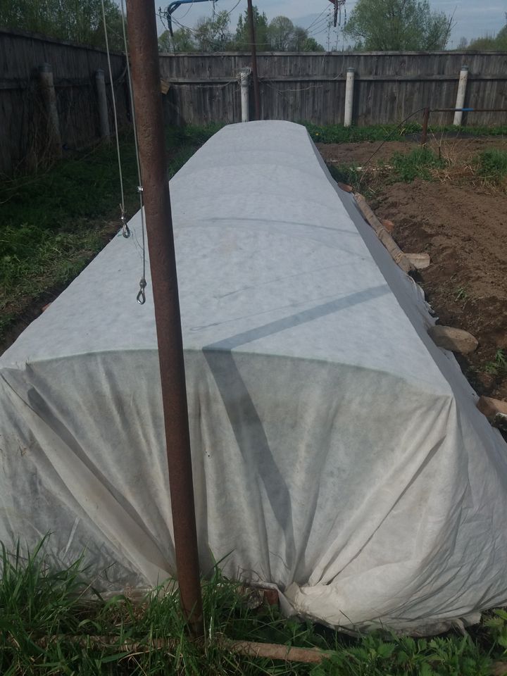 Седмица по-късно решихме да го засадим в открита почва, като го покрием с лутрасил.