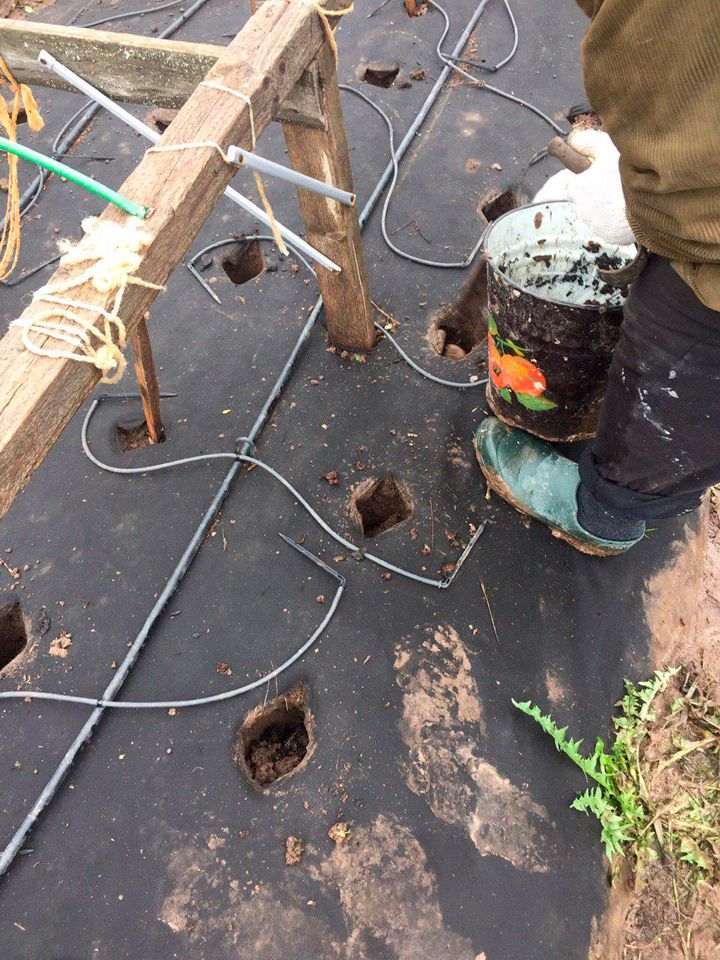 Засаждането не се различаваше от засаждането в оранжерия. Освен това изградихме капково напояване и осигурихме подслон.