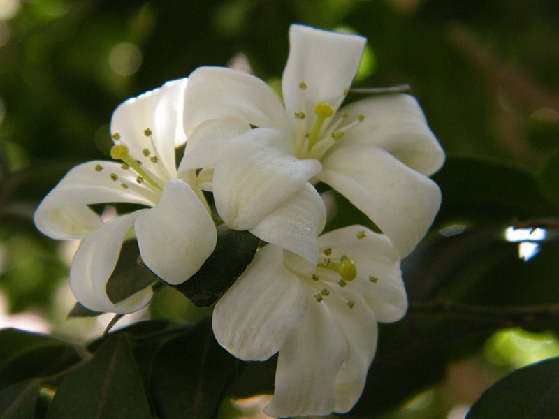 | Самбак (индийски, арабски или арабски) | Непретенциозна. Дълга лоза, може да достигне 6 м. Има тънки издънки и големи, яйцевидни листа, както и бели цветове, напомнящи на камелии или полудвойни рози. | март – октомври |