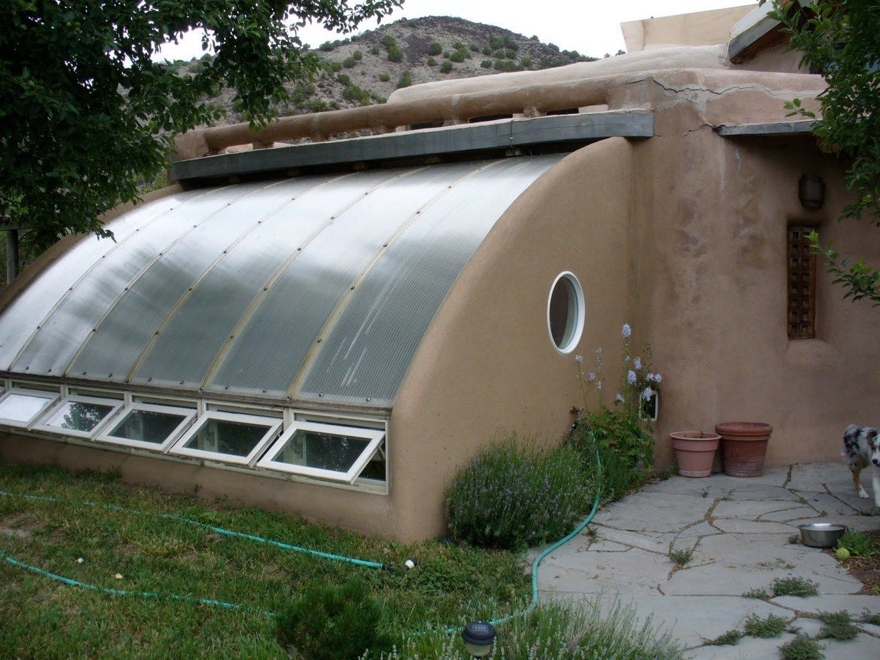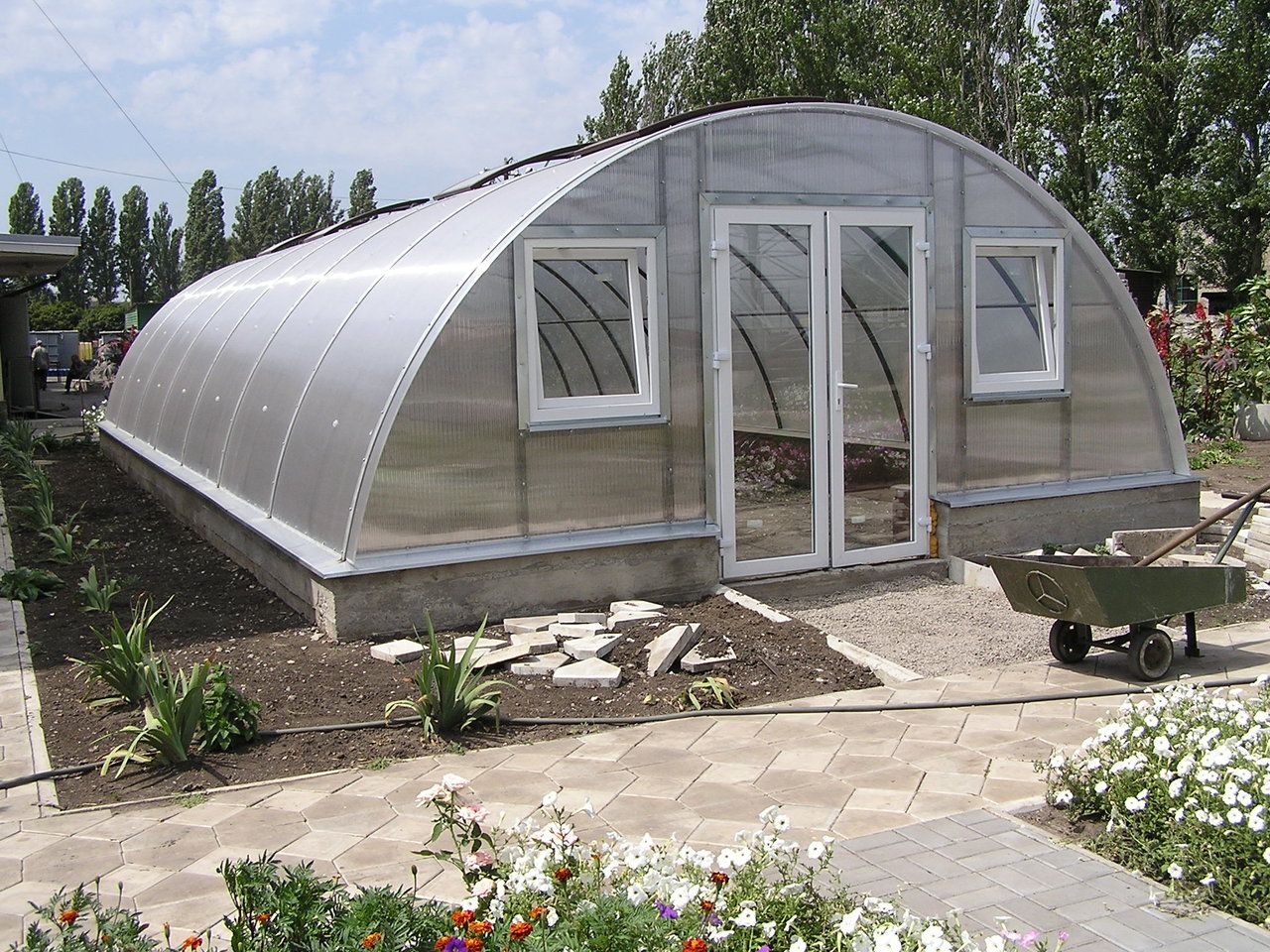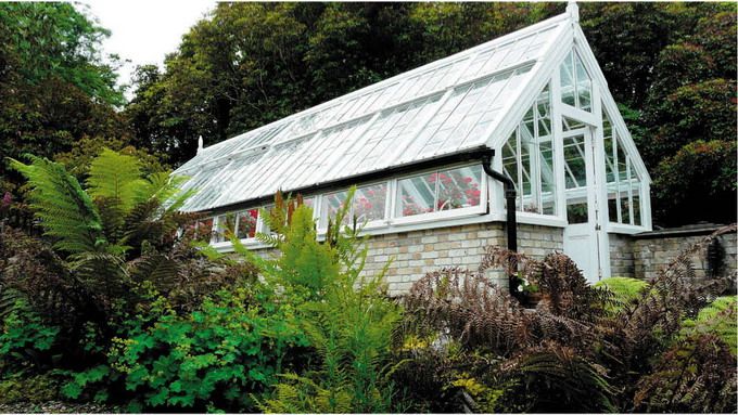 - Оранжерия, изработена от метал и стъкло, наподобяваща малка колиба. Интериорът е завършен с дърво. Благодарение на използването на хидравлично отопление, може да се използва дори през зимата. Покривът е с остра форма, което прави конструкцията устойчива на валежи.