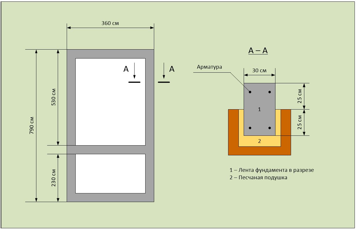 Ще изградим плитък лентов фундамент от стоманобетон. Фундаментът трябва да се простира не само по периметъра на оранжерията, но и на мястото на основната преграда, разделяща вестибюла и оранжерията.