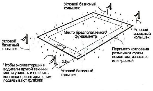 Първото нещо, което трябва да направите, е да разчистите мястото, да го нивелирате и да го маркирате с колчета и връв.