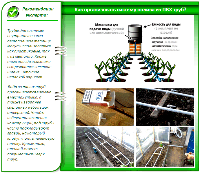 Необходимият дебит на водата зависи от площта на оранжерията, така че планирайте водоснабдяването предварително. Ако източникът е разположен далеч от конструкцията, тръбите ще трябва да бъдат положени на дълбочина 1-1,8 метра. Преди поливане водата трябва да се загрее в специални контейнери - или чрез слънчева светлина, или изкуствено. През нощта се осъществява топлообмен между водата и въздуха, което допълнително намалява температурните колебания.