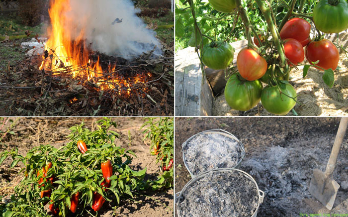 Важно! Използвайте само пепел от растителни остатъци за торене на домати. Не я смесвайте с хартия или други битови отпадъци, които биха могли да попаднат в огъня. Вредните продукти от горенето в крайна сметка ще попаднат в плодовете, ако първо не причинят смъртта на растението.